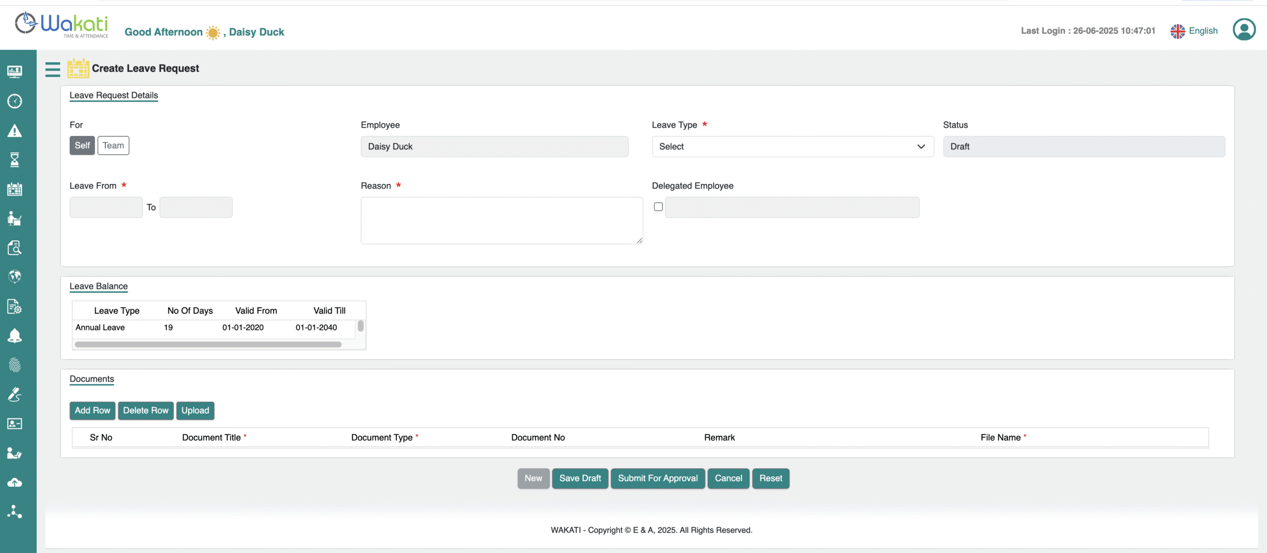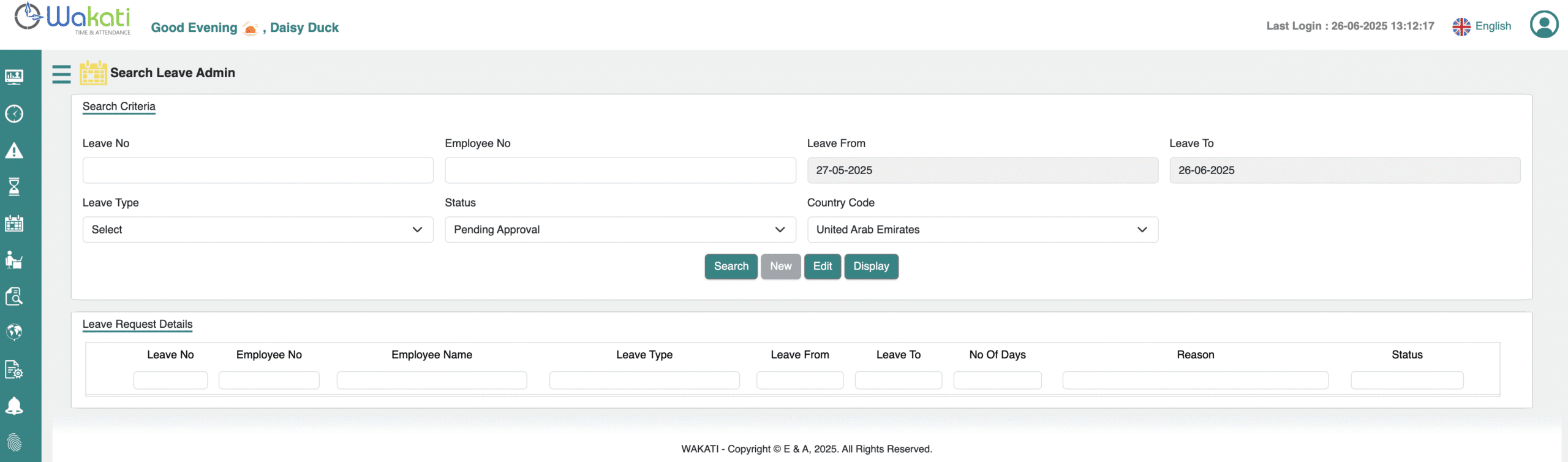 Leave Search and Creating New Request