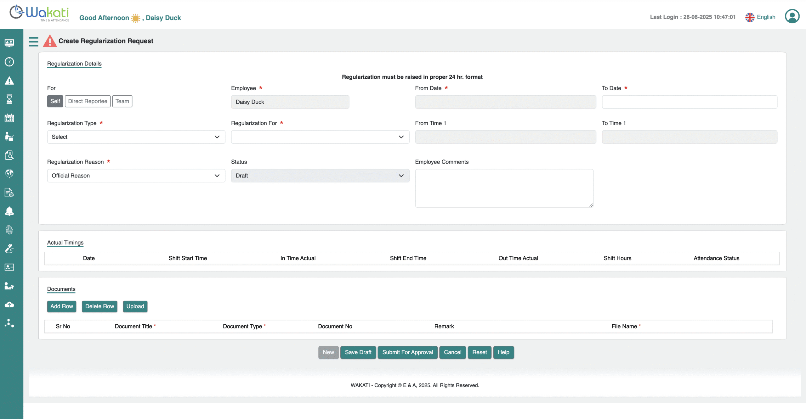 This feature allows managers to raise Regularization Requests on behalf of their team members. It ensures accurate attendance records by addressing discrepancies such as missed punches, incorrect log times, or unrecorded attendance, streamlining the process for both managers and employees.